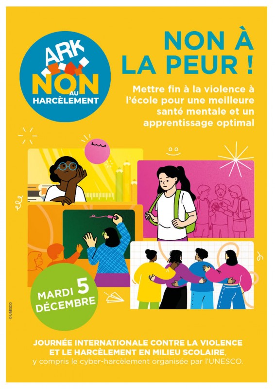 La violence à l'école, qu'elle soit physique, psychologique, ou sexuelle, inclut la violence liée au genre, le harcèlement et le cyberharcèlement. Cette année, l'UNESCO appelle à mettre fin à la violence et à promouvoir la bonne santé mentale à l'école, afin de garantir aux apprenants un environnement sûr et favorable sous le thème : "Non à la peur : Mettre fin à la violence scolaire pour préserver la santé mentale et mieux apprendre".