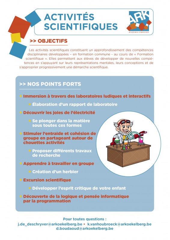 Les activités scientifiques constituent un approfondissement des compétences disciplinaires développées – en formation commune - au cours de " Formation scientifique". Elles permettent aux élèves de développer de nouvelles compétences en s’appuyant sur leurs représentations mentales, leurs conceptions et de s’approprier progressivement une démarche scientifique.